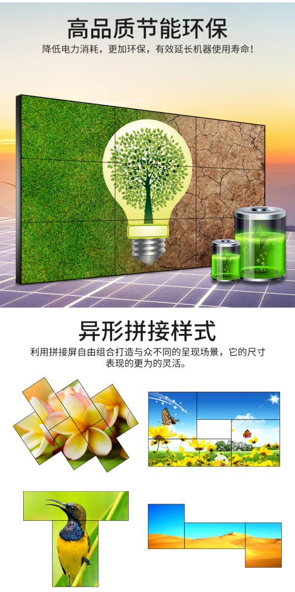 窄边拼接设计,大屏幕百变播放,可任意选择(行(m)×列(n)),也可以采用艺术性的异形拼接单元,屏的大小以及拼缝都有多种选择,可以满足不同的场合需求。